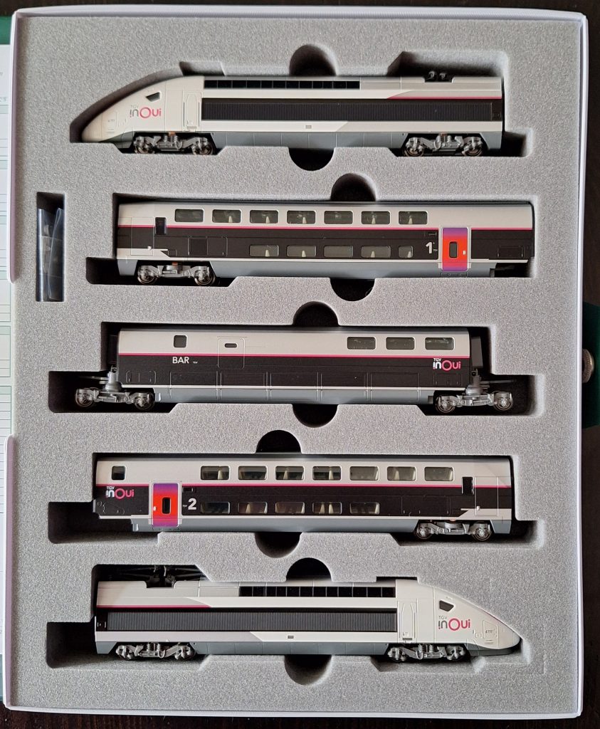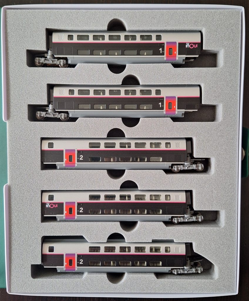 vous pourrez désormais également trouver chez TJ-Modeles le magnifique TGV EuroDuplex inOui proposé par Kato à l’échelle N en deux coffrets séparés :